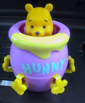 しりとりに参加します。“プーさんのミニおもちゃ”です。お菓子のおまけ、というより完全にこっちがメインですよね。周りにある黄色いミツバチ(分かりにくいですが)のどれかを押すと……