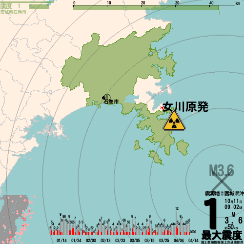 日本の地震の震度情報を、市区町村単位で、地図に描きます。地震は、地盤によって意外な揺れ方をしており、一概に近いほど揺れている訳ではありません。震度3以上の地震はプッシュ通知でお知らせします。津波注意報・津波警報が出ている場合、その旨を文字とともに、海を赤色に描画して警告します。過去の地震も閲覧できます。原子力発電所との位置関係を把握可能。