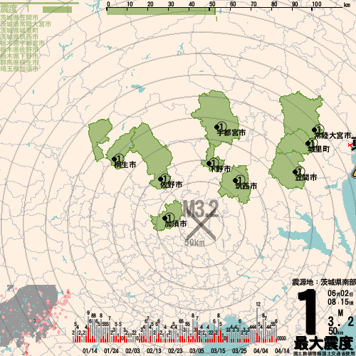 日本の地震の震度情報を、市区町村単位で、地図に描きます。地震は、地盤によって意外な揺れ方をしており、一概に近いほど揺れている訳ではありません。震度3以上の地震はプッシュ通知でお知らせします。津波注意報・津波警報が出ている場合、その旨を文字とともに、海を赤色に描画して警告します。過去の地震も閲覧できます。原子力発電所との位置関係を把握可能。