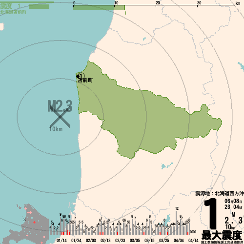 日本で起きた地震を、震度1以上を対象に描画。震度3以上の地震についてはプッシュ通知。津波注意報・津波警報が出ている場合、その旨を文字とともに、海を赤色に描画して警告。過去10回の地震の閲覧。Twitterでのスムーズな情報共有。地図の生成には、気象庁の公開している地震情報と、国土交通省の国土数値情報(県境・湖・役所)およびNaturalEarthの海外地図を利用しています。