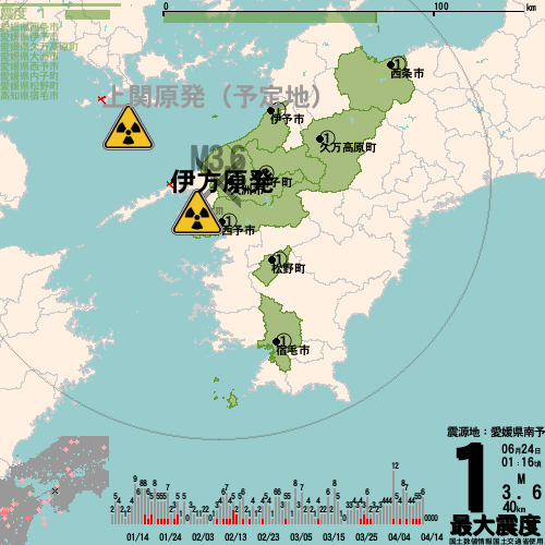 日本の地震の震度情報を、市区町村単位で、地図に描きます。地震は、地盤によって意外な揺れ方をしており、一概に近いほど揺れている訳ではありません。震度3以上の地震はプッシュ通知でお知らせします。津波注意報・津波警報が出ている場合、その旨を文字とともに、海を赤色に描画して警告します。過去の地震も閲覧できます。原子力発電所との位置関係を把握可能。