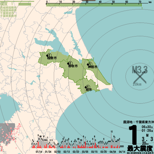 日本の地震の震度情報を、市区町村単位で、地図に描きます。地震は、地盤によって意外な揺れ方をしており、一概に近いほど揺れている訳ではありません。震度3以上の地震はプッシュ通知でお知らせします。津波注意報・津波警報が出ている場合、その旨を文字とともに、海を赤色に描画して警告します。過去の地震も閲覧できます。原子力発電所との位置関係を把握可能。