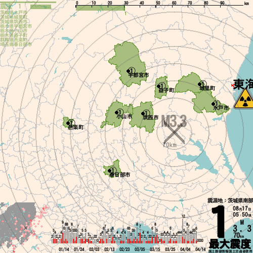 日本の地震の震度情報を、市区町村単位で、地図に描きます。地震は、地盤によって意外な揺れ方をしており、一概に近いほど揺れている訳ではありません。震度3以上の地震はプッシュ通知でお知らせします。津波注意報・津波警報が出ている場合、その旨を文字とともに、海を赤色に描画して警告します。過去の地震も閲覧できます。原子力発電所との位置関係を把握可能。