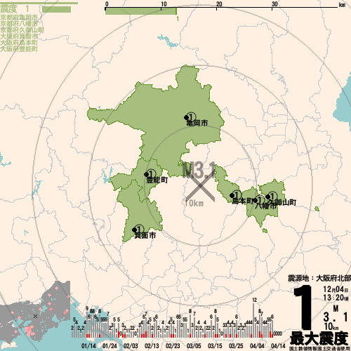 日本の地震の震度情報を、市区町村単位で、地図に描きます。地震は、地盤によって意外な揺れ方をしており、一概に近いほど揺れている訳ではありません。震度3以上の地震はプッシュ通知でお知らせします。津波注意報・津波警報が出ている場合、その旨を文字とともに、海を赤色に描画して警告します。過去の地震も閲覧できます。原子力発電所との位置関係を把握可能。