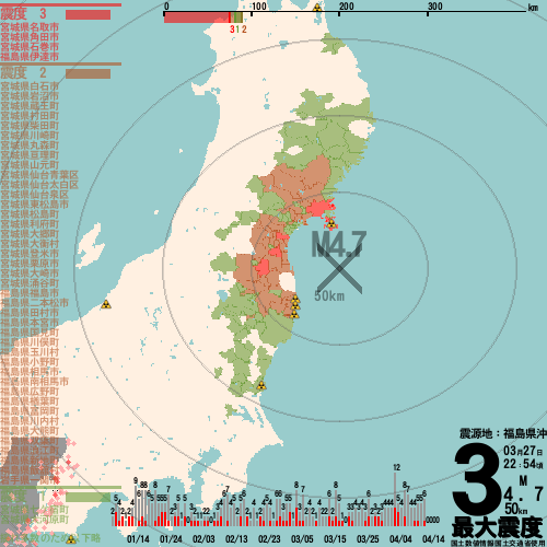 ◆気象庁の地震情報を引用加工して、独自の地図を生成し、表示しています。