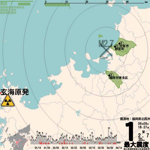 日本の地震の震度情報を、市区町村単位で、地図に描きます。地震は、地盤によって意外な揺れ方をしており、一概に近いほど揺れている訳ではありません。震度3以上の地震はプッシュ通知でお知らせします。津波注意報・津波警報が出ている場合、その旨を文字とともに、海を赤色に描画して警告します。過去の地震も閲覧できます。原子力発電所との位置関係を把握可能。