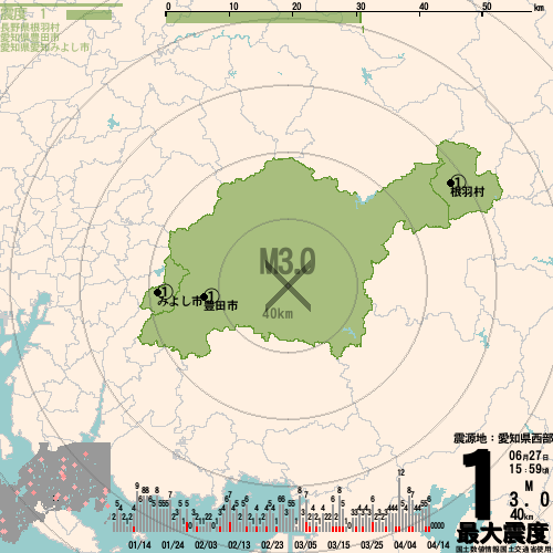 愛知県西部_最大震度1_M3.0_40km