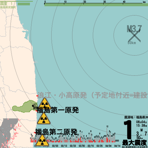 日本の地震の震度情報を、市区町村単位で、地図に描きます。地震は、地盤によって意外な揺れ方をしており、一概に近いほど揺れている訳ではありません。震度3以上の地震はプッシュ通知でお知らせします。津波注意報・津波警報が出ている場合、その旨を文字とともに、海を赤色に描画して警告します。過去の地震も閲覧できます。原子力発電所との位置関係を把握可能。