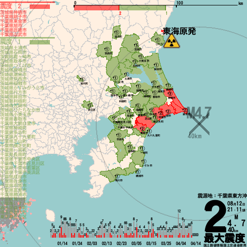日本の地震の震度情報を、市区町村単位で、地図に描きます。地震は、地盤によって意外な揺れ方をしており、一概に近いほど揺れている訳ではありません。震度3以上の地震はプッシュ通知でお知らせします。津波注意報・津波警報が出ている場合、その旨を文字とともに、海を赤色に描画して警告します。過去の地震も閲覧できます。原子力発電所との位置関係を把握可能。