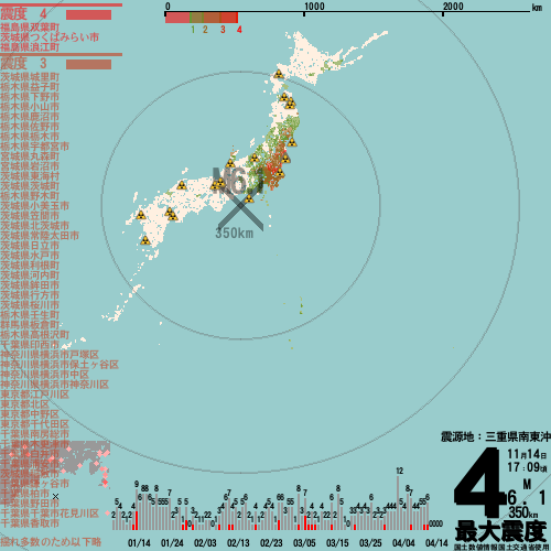 ◆気象庁の地震情報を引用加工して、独自の地図を生成し、表示しています。
