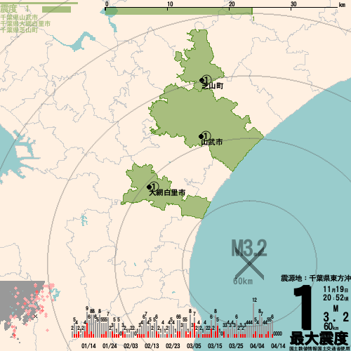 日本の地震の震度情報を、市区町村単位で、地図に描きます。地震は、地盤によって意外な揺れ方をしており、一概に近いほど揺れている訳ではありません。震度3以上の地震はプッシュ通知でお知らせします。津波注意報・津波警報が出ている場合、その旨を文字とともに、海を赤色に描画して警告します。過去の地震も閲覧できます。原子力発電所との位置関係を把握可能。