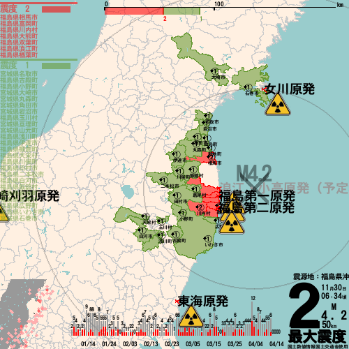 日本の地震の震度情報を、市区町村単位で、地図に描きます。地震は、地盤によって意外な揺れ方をしており、一概に近いほど揺れている訳ではありません。震度3以上の地震はプッシュ通知でお知らせします。津波注意報・津波警報が出ている場合、その旨を文字とともに、海を赤色に描画して警告します。過去の地震も閲覧できます。原子力発電所との位置関係を把握可能。