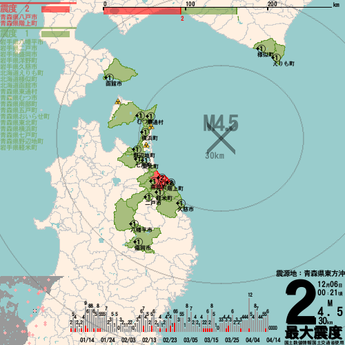日本の地震の震度情報を、市区町村単位で、地図に描きます。地震は、地盤によって意外な揺れ方をしており、一概に近いほど揺れている訳ではありません。震度3以上の地震はプッシュ通知でお知らせします。津波注意報・津波警報が出ている場合、その旨を文字とともに、海を赤色に描画して警告します。過去の地震も閲覧できます。原子力発電所との位置関係を把握可能。