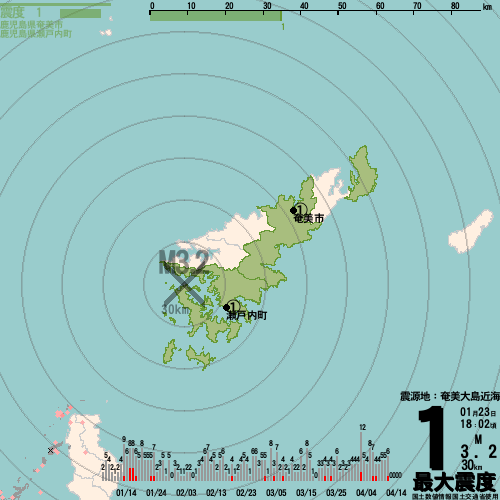 日本の地震の震度情報を、市区町村単位で、地図に描きます。地震は、地盤によって意外な揺れ方をしており、一概に近いほど揺れている訳ではありません。震度3以上の地震はプッシュ通知でお知らせします。津波注意報・津波警報が出ている場合、その旨を文字とともに、海を赤色に描画して警告します。過去の地震も閲覧できます。原子力発電所との位置関係を把握可能。