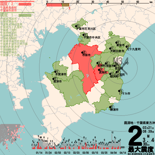 日本の地震の震度情報を、市区町村単位で、地図に描きます。地震は、地盤によって意外な揺れ方をしており、一概に近いほど揺れている訳ではありません。震度3以上の地震はプッシュ通知でお知らせします。津波注意報・津波警報が出ている場合、その旨を文字とともに、海を赤色に描画して警告します。過去の地震も閲覧できます。原子力発電所との位置関係を把握可能。