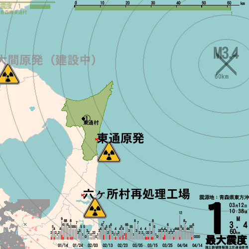 日本の地震の震度情報を、市区町村単位で、地図に描きます。地震は、地盤によって意外な揺れ方をしており、一概に近いほど揺れている訳ではありません。震度3以上の地震はプッシュ通知でお知らせします。津波注意報・津波警報が出ている場合、その旨を文字とともに、海を赤色に描画して警告します。過去の地震も閲覧できます。原子力発電所との位置関係を把握可能。