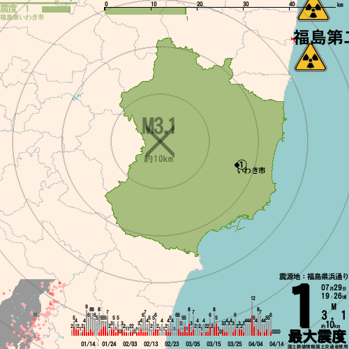 日本の地震の震度情報を、市区町村単位で、地図に描きます。地震は、地盤によって意外な揺れ方をしており、一概に近いほど揺れている訳ではありません。震度3以上の地震はプッシュ通知でお知らせします。津波注意報・津波警報が出ている場合、その旨を文字とともに、海を赤色に描画して警告します。過去の地震も閲覧できます。原子力発電所との位置関係を把握可能。