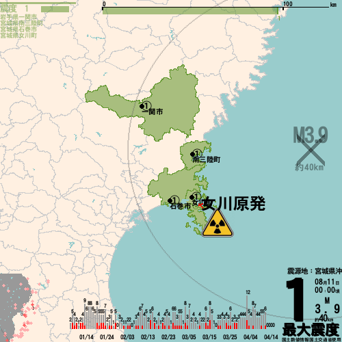日本の地震の震度情報を、市区町村単位で、地図に描きます。地震は、地盤によって意外な揺れ方をしており、一概に近いほど揺れている訳ではありません。震度3以上の地震はプッシュ通知でお知らせします。津波注意報・津波警報が出ている場合、その旨を文字とともに、海を赤色に描画して警告します。過去の地震も閲覧できます。原子力発電所との位置関係を把握可能。