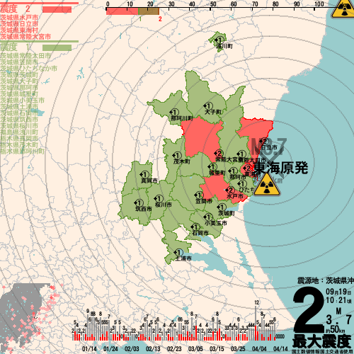 水戸市,2日立市,2東海村,2常陸大宮市,2常陸太田市,1笠間市,1ひたちなか市,1茨城町,1大子町,1那珂市,1城里町,1小美玉市,1土浦市,1石岡市,1筑西市,1桜川市,1