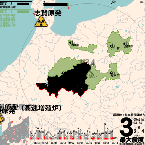 岐阜県飛騨地方_最大震度3_M3.4_約10km未満