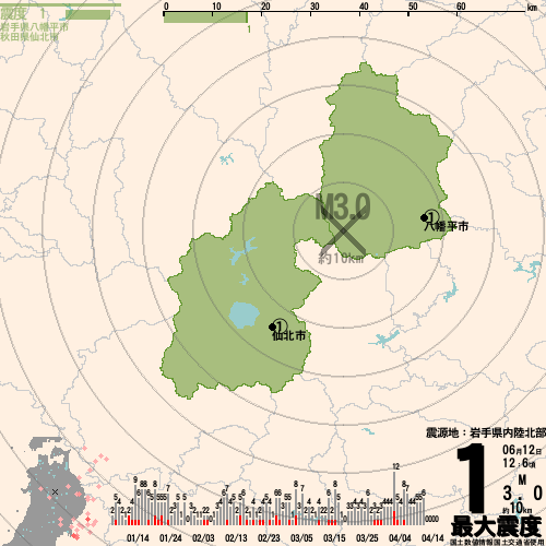 岩手県内陸北部_最大震度1_M3.0_約10km