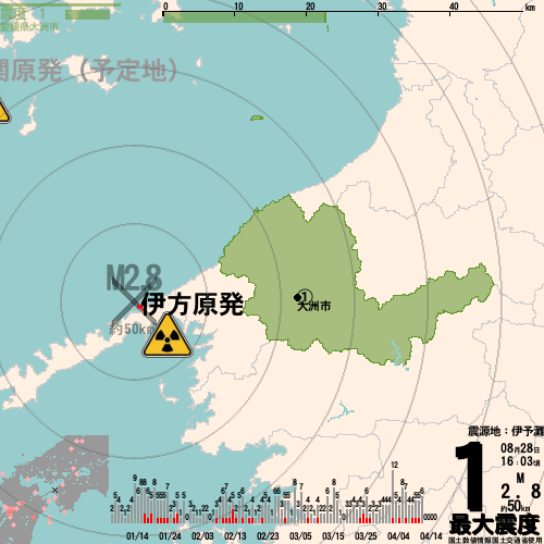 日本の地震の震度情報を、市区町村単位で、地図に描きます。地震は、地盤によって意外な揺れ方をしており、一概に近いほど揺れている訳ではありません。震度3以上の地震はプッシュ通知でお知らせします。津波注意報・津波警報が出ている場合、その旨を文字とともに、海を赤色に描画して警告します。過去の地震も閲覧できます。原子力発電所との位置関係を把握可能。