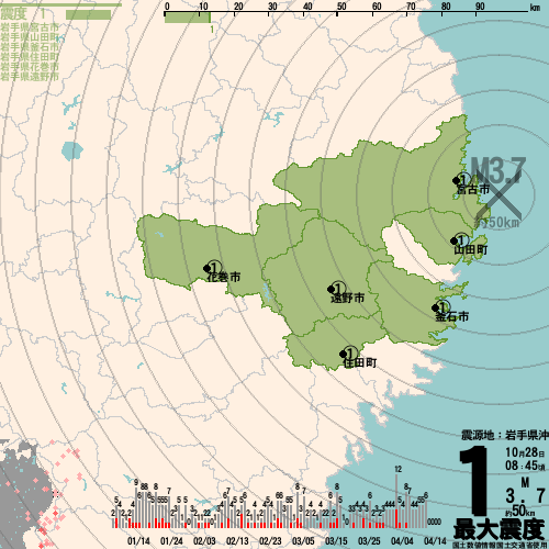 日本の地震の震度情報を、市区町村単位で、地図に描きます。地震は、地盤によって意外な揺れ方をしており、一概に近いほど揺れている訳ではありません。震度3以上の地震はプッシュ通知でお知らせします。津波注意報・津波警報が出ている場合、その旨を文字とともに、海を赤色に描画して警告します。過去の地震も閲覧できます。原子力発電所との位置関係を把握可能。