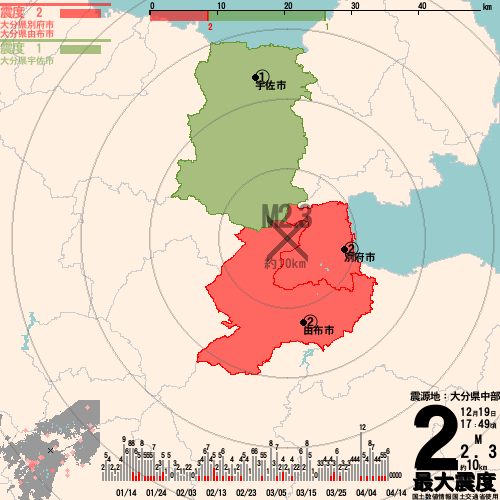 日本の地震の震度情報を、市区町村単位で、地図に描きます。地震は、地盤によって意外な揺れ方をしており、一概に近いほど揺れている訳ではありません。震度3以上の地震はプッシュ通知でお知らせします。津波注意報・津波警報が出ている場合、その旨を文字とともに、海を赤色に描画して警告します。過去の地震も閲覧できます。原子力発電所との位置関係を把握可能。