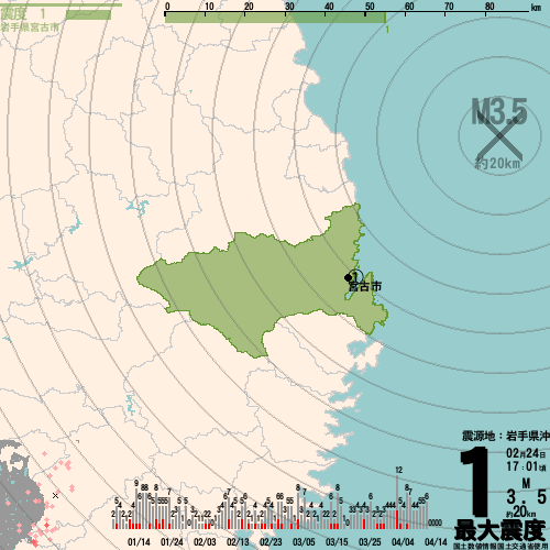 日本の地震の震度情報を、市区町村単位で、地図に描きます。地震は、地盤によって意外な揺れ方をしており、一概に近いほど揺れている訳ではありません。震度3以上の地震はプッシュ通知でお知らせします。津波注意報・津波警報が出ている場合、その旨を文字とともに、海を赤色に描画して警告します。過去の地震も閲覧できます。原子力発電所との位置関係を把握可能。