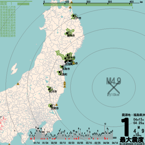 日本の地震の震度情報を、市区町村単位で、地図に描きます。地震は、地盤によって意外な揺れ方をしており、一概に近いほど揺れている訳ではありません。震度3以上の地震はプッシュ通知でお知らせします。津波注意報・津波警報が出ている場合、その旨を文字とともに、海を赤色に描画して警告します。過去の地震も閲覧できます。原子力発電所との位置関係を把握可能。