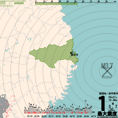 日本で起きた地震を、震度1以上を対象に描画。震度3以上の地震についてはプッシュ通知。津波注意報・津波警報が出ている場合、その旨を文字とともに、海を赤色に描画して警告。過去10回の地震の閲覧。Twitterでのスムーズな情報共有。地図の生成には、気象庁の公開している地震情報と、国土交通省の国土数値情報(県境・湖・役所)およびNaturalEarthの海外地図を利用しています。