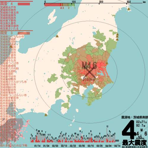 ◆気象庁の地震情報を引用加工して、独自の地図を生成し、表示しています。