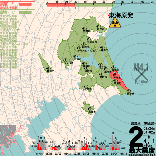 日本の地震の震度情報を、市区町村単位で、地図に描きます。地震は、地盤によって意外な揺れ方をしており、一概に近いほど揺れている訳ではありません。震度3以上の地震はプッシュ通知でお知らせします。津波注意報・津波警報が出ている場合、その旨を文字とともに、海を赤色に描画して警告します。過去の地震も閲覧できます。原子力発電所との位置関係を把握可能。
