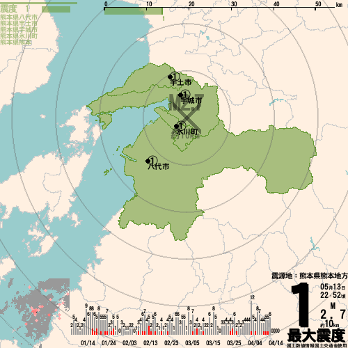 熊本県熊本地方_最大震度1_M2.7_約10km