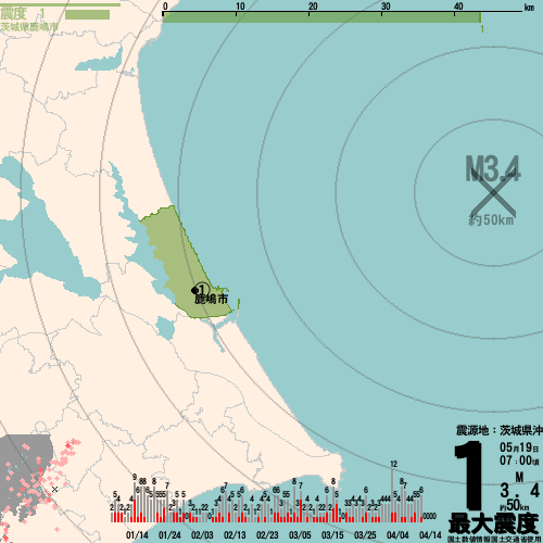 日本の地震の震度情報を、市区町村単位で、地図に描きます。地震は、地盤によって意外な揺れ方をしており、一概に近いほど揺れている訳ではありません。震度3以上の地震はプッシュ通知でお知らせします。津波注意報・津波警報が出ている場合、その旨を文字とともに、海を赤色に描画して警告します。過去の地震も閲覧できます。原子力発電所との位置関係を把握可能。