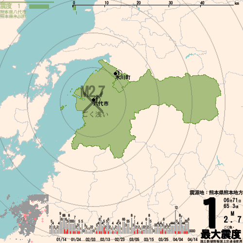 熊本県熊本地方_最大震度1_M2.7_約10km未満