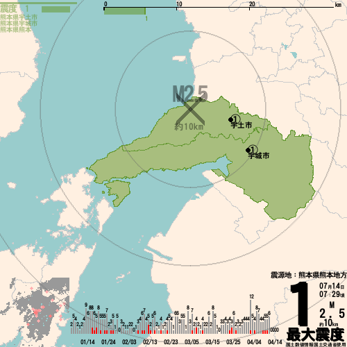 熊本県熊本地方_最大震度1_M2.5_約10km