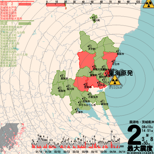 水戸市,2日立市,2笠間市,2東海村,2常陸大宮市,2常陸太田市,1高萩市,1ひたちなか市,1大子町,1那珂市,1城里町,1小美玉市,1土浦市,1石岡市,1筑西市,1かすみがうら市,1桜川市,1鉾田市,1