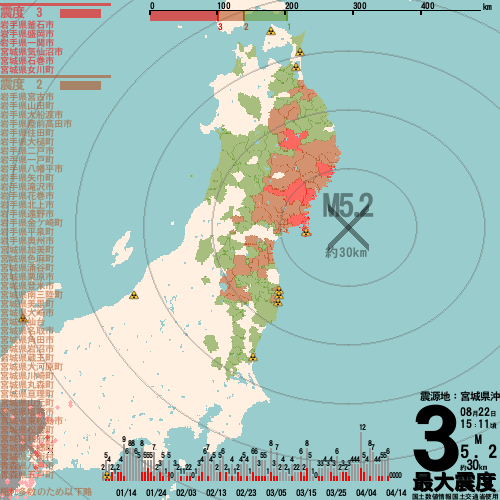 ◆気象庁の地震情報を引用加工して、独自の地図を生成し、表示しています。