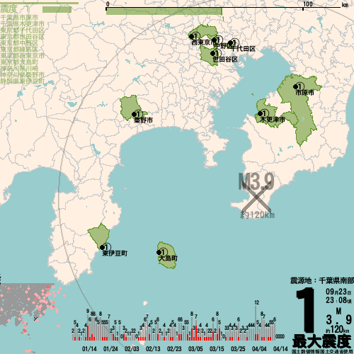 千葉県南部_最大震度1_M3.9_約120km