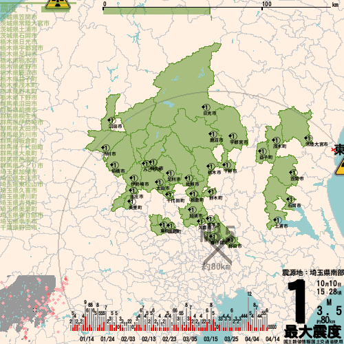 ◆気象庁の地震情報を引用加工して、独自の地図を生成し、表示しています。