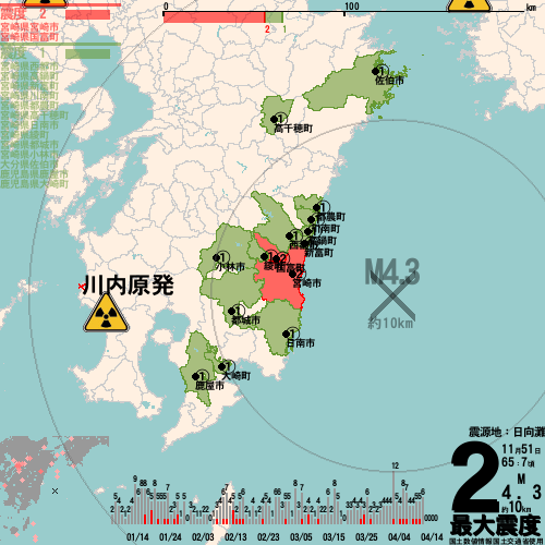 日本の地震の震度情報を、市区町村単位で、地図に描きます。地震は、地盤によって意外な揺れ方をしており、一概に近いほど揺れている訳ではありません。震度3以上の地震はプッシュ通知でお知らせします。津波注意報・津波警報が出ている場合、その旨を文字とともに、海を赤色に描画して警告します。過去の地震も閲覧できます。原子力発電所との位置関係を把握可能。