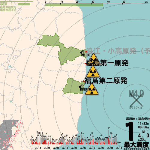 日本の地震の震度情報を、市区町村単位で、地図に描きます。地震は、地盤によって意外な揺れ方をしており、一概に近いほど揺れている訳ではありません。震度3以上の地震はプッシュ通知でお知らせします。津波注意報・津波警報が出ている場合、その旨を文字とともに、海を赤色に描画して警告します。過去の地震も閲覧できます。原子力発電所との位置関係を把握可能。