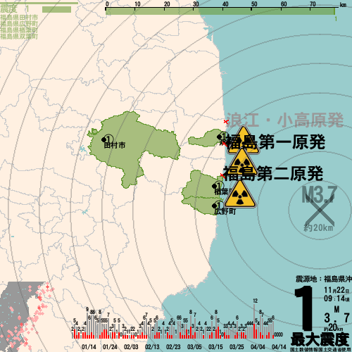 日本の地震の震度情報を、市区町村単位で、地図に描きます。地震は、地盤によって意外な揺れ方をしており、一概に近いほど揺れている訳ではありません。震度3以上の地震はプッシュ通知でお知らせします。津波注意報・津波警報が出ている場合、その旨を文字とともに、海を赤色に描画して警告します。過去の地震も閲覧できます。原子力発電所との位置関係を把握可能。