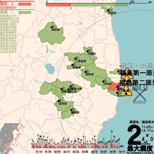 日本の地震の震度情報を、市区町村単位で、地図に描きます。地震は、地盤によって意外な揺れ方をしており、一概に近いほど揺れている訳ではありません。震度3以上の地震はプッシュ通知でお知らせします。津波注意報・津波警報が出ている場合、その旨を文字とともに、海を赤色に描画して警告します。過去の地震も閲覧できます。原子力発電所との位置関係を把握可能。