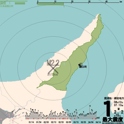 網走地方_最大震度1_M2.2_約10km