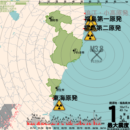 日本の地震の震度情報を、市区町村単位で、地図に描きます。地震は、地盤によって意外な揺れ方をしており、一概に近いほど揺れている訳ではありません。震度3以上の地震はプッシュ通知でお知らせします。津波注意報・津波警報が出ている場合、その旨を文字とともに、海を赤色に描画して警告します。過去の地震も閲覧できます。原子力発電所との位置関係を把握可能。