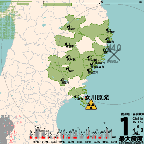 日本の地震の震度情報を、市区町村単位で、地図に描きます。地震は、地盤によって意外な揺れ方をしており、一概に近いほど揺れている訳ではありません。震度3以上の地震はプッシュ通知でお知らせします。津波注意報・津波警報が出ている場合、その旨を文字とともに、海を赤色に描画して警告します。過去の地震も閲覧できます。原子力発電所との位置関係を把握可能。