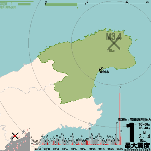 日本の地震の震度情報を、市区町村単位で、地図に描きます。地震は、地盤によって意外な揺れ方をしており、一概に近いほど揺れている訳ではありません。震度3以上の地震はプッシュ通知でお知らせします。津波注意報・津波警報が出ている場合、その旨を文字とともに、海を赤色に描画して警告します。過去の地震も閲覧できます。原子力発電所との位置関係を把握可能。