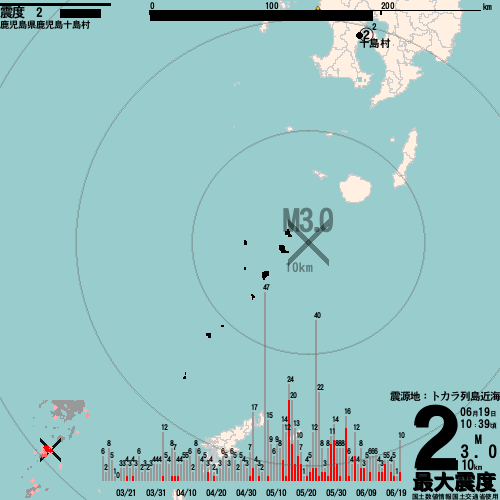 日本の地震の震度情報を、市区町村単位で、地図に描きます。地震は、地盤によって意外な揺れ方をしており、一概に近いほど揺れている訳ではありません。震度3以上の地震はプッシュ通知でお知らせします。津波注意報・津波警報が出ている場合、その旨を文字とともに、海を赤色に描画して警告します。過去の地震も閲覧できます。原子力発電所との位置関係を把握可能。